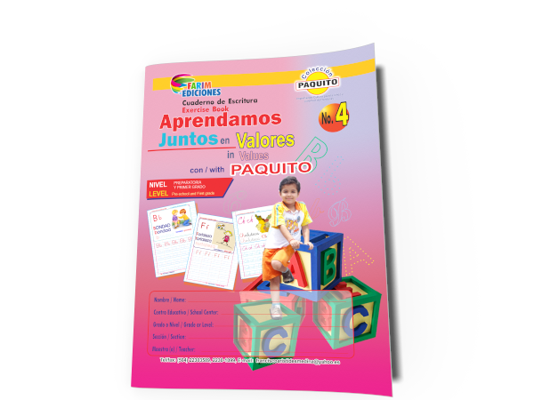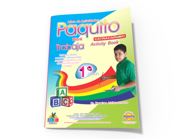 Texto ilustrado y componente inseparable del libro de lectura Paquito lee y Paquito escribe alusivos en todo su contesto.Elaborado para observar, reconocer, colorear, trazar, delinear, identificar, escribir, recortar, pintar, completar,comentar, pegar, etc.