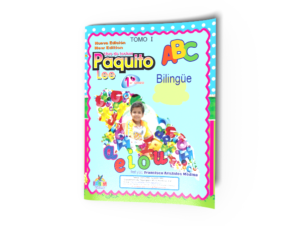 Texto básico para el primer y segundo año escolar con la modalidad bilingüe español-ingles con ilustraciones e imágenes a colores iniciando con las vocales, palabras, frases, oraciones y párrafos alusivos a cada lección propuesta.